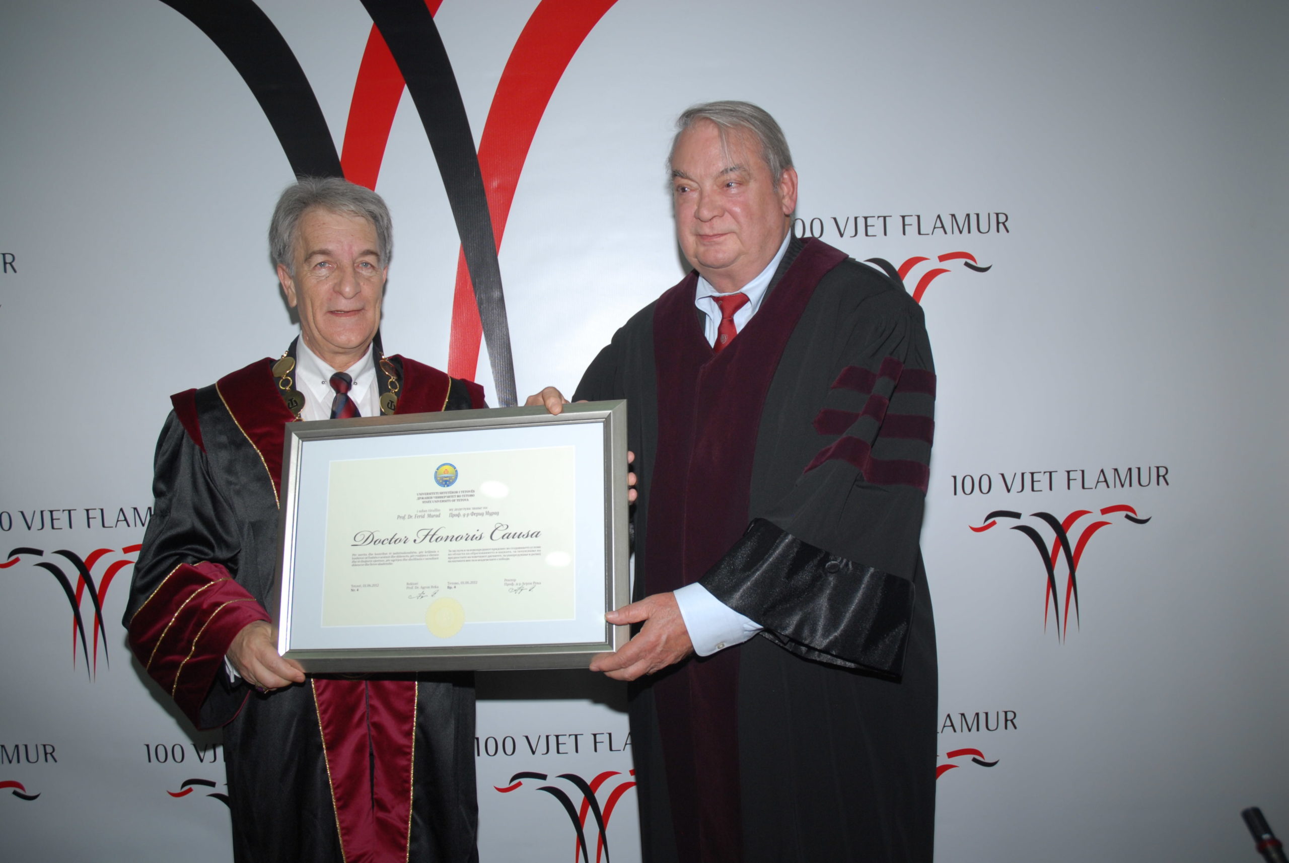Duke i respektuar arritjet dhe sukseset e nobelistit, Prof. Dr. Ferid Murad, kontributin e tij të gjithanshëm, punën kërkimore – shkencore, veprimtarinë profesionale aplikative dhe publicistike, vlerat etike, angazhimin në thellimin e punës hulumtuese dhe zbulimeve shkencore në fushën e shkencave të mjekësisë, humanizmin, rolin novator në fushën e shkencave të biomedicinës, zbulimin e jashtëzakonshëm për rolin e oksidit të azotit në sëmundjet kardiovaskulare, si dhe dëshirën për bartjen e njohurive të pasura dhe krijimin e kushteve për realizimin e aktiviteteve kërkimore – shkencore të hulumtuesve të rinj, Universiteti i Tetovës, në qershor të vitit 2012, i ndau titullin Doktor Nderi i Shkencave (Doctor Honoris Causa).