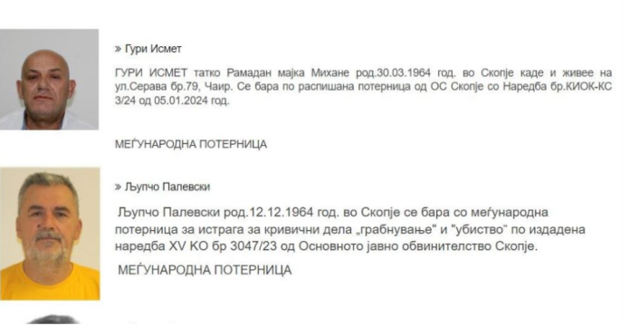 Ministria e Punëve të Brendshme sot në faqen e saj ka publikuar zyrtarisht fletarrest ndërkombëtar për Ismet Gurin.