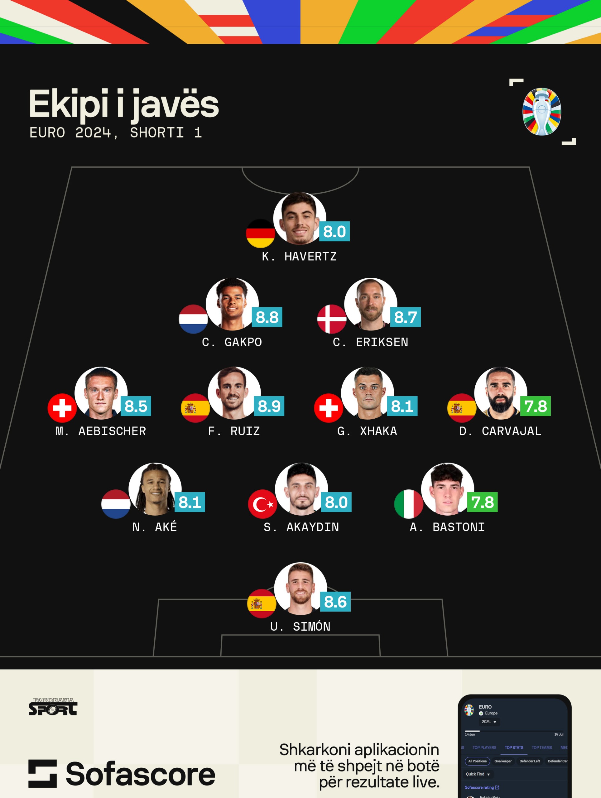 Mbrëmë është mbyllur raundi i parë në fazën e grupeve të Europianit. Portali i njohur i statistikave, “Sofascore” ka publikuar 11-shen më të mirë të raundit të parë.