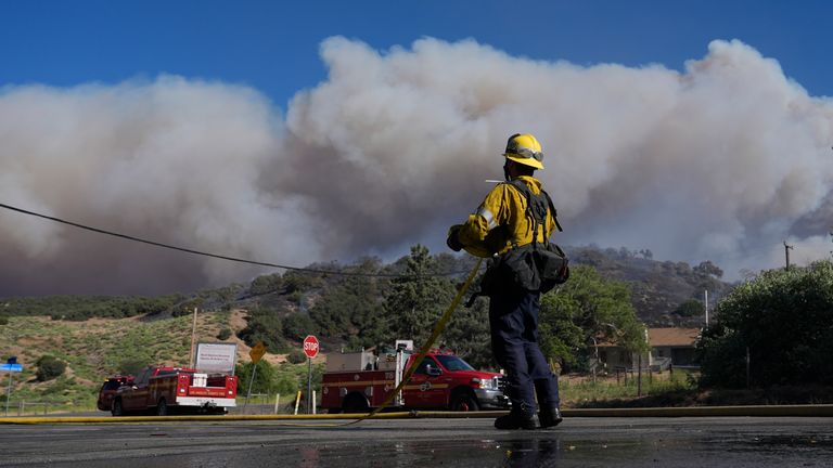 Janë shfaqur pamje dramatike që tregojnë zjarrfikësit duke u përpjekur të shuajnë një zjarr masiv në Los Anxhelos, Kaliforni, i cili tashmë ka detyruar evakuimin e 1 mijë e200 njerëzve.