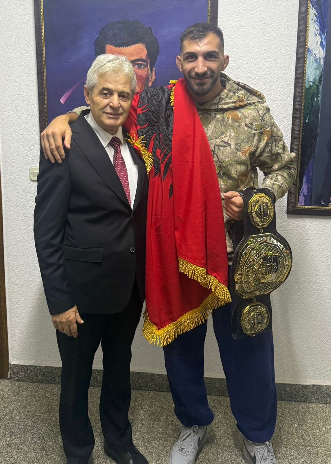 Sot Ali Ahmeti, kryetar i Bashkimit Demokratik për Integrim (BDI), priti në takim kampionin e madh Florim Zendeli, fitues dhe mbrojtës i titullit në Professional Fighters League Europe (PFL Europe), pas suksesit të tij të fundit në Dubai.
