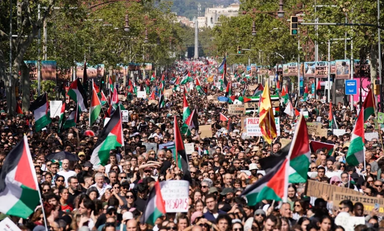 Mijëra njerëz kanë marshuar nëpër qendër të Barcelonës në mbështetje të Palestinës, duke kërkuar fundin e luftës në Gaza dhe fundin e tregtisë së armëve me Izraelin.