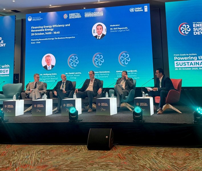 Kryetari i Bordit Drejtues të EVN Maqedoni, z. Vollfgang Maier, mbajti një fjalim në sesionin kushtuar “Financimit të Efiçiencës së Energjisë dhe Burimeve të Rinovueshme”. Ai theksoi se nuk ka tranzicion të gjelbër pa rrjete të forta, inteligjente dhe moderne të shpërndarjes.