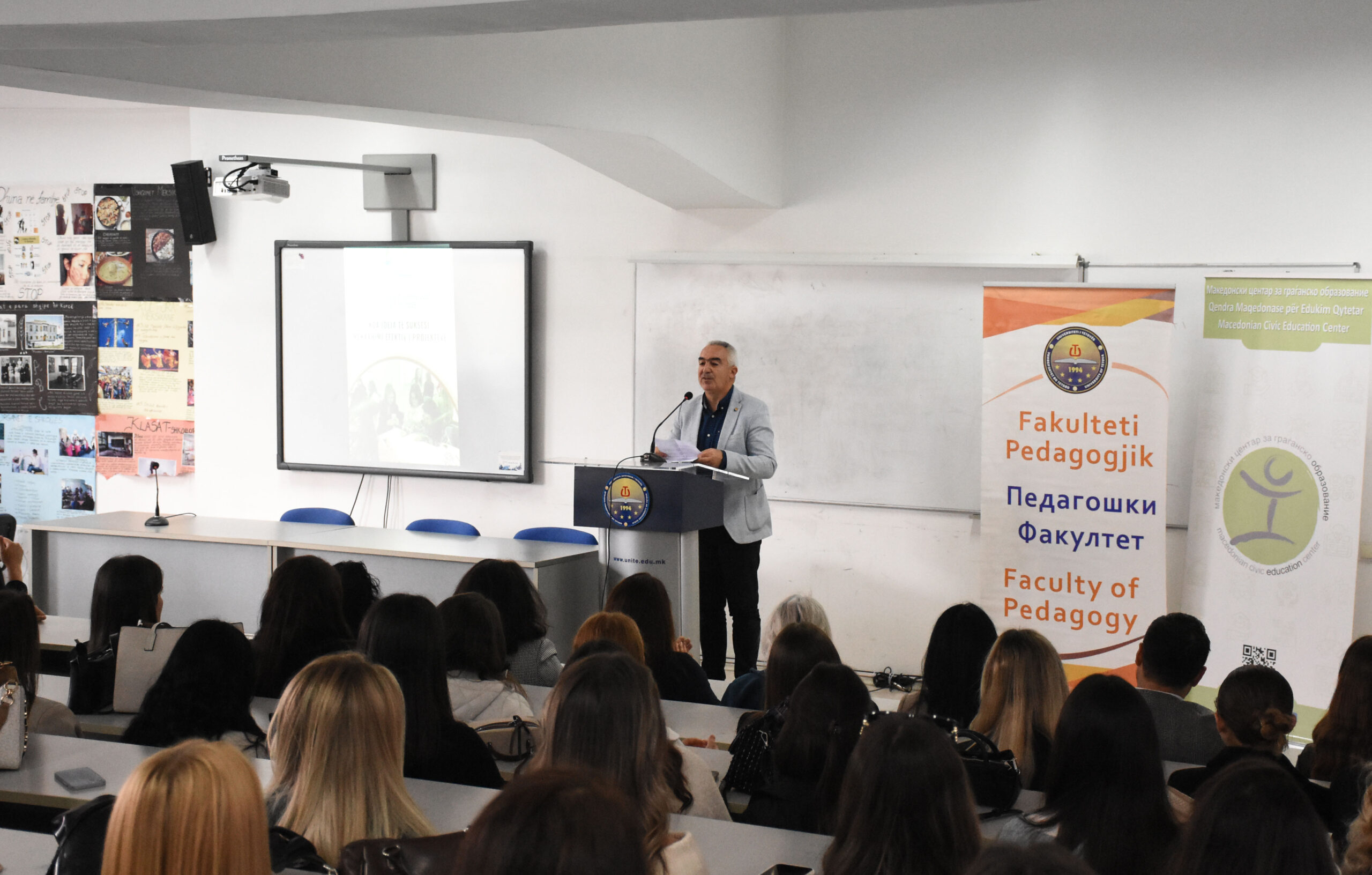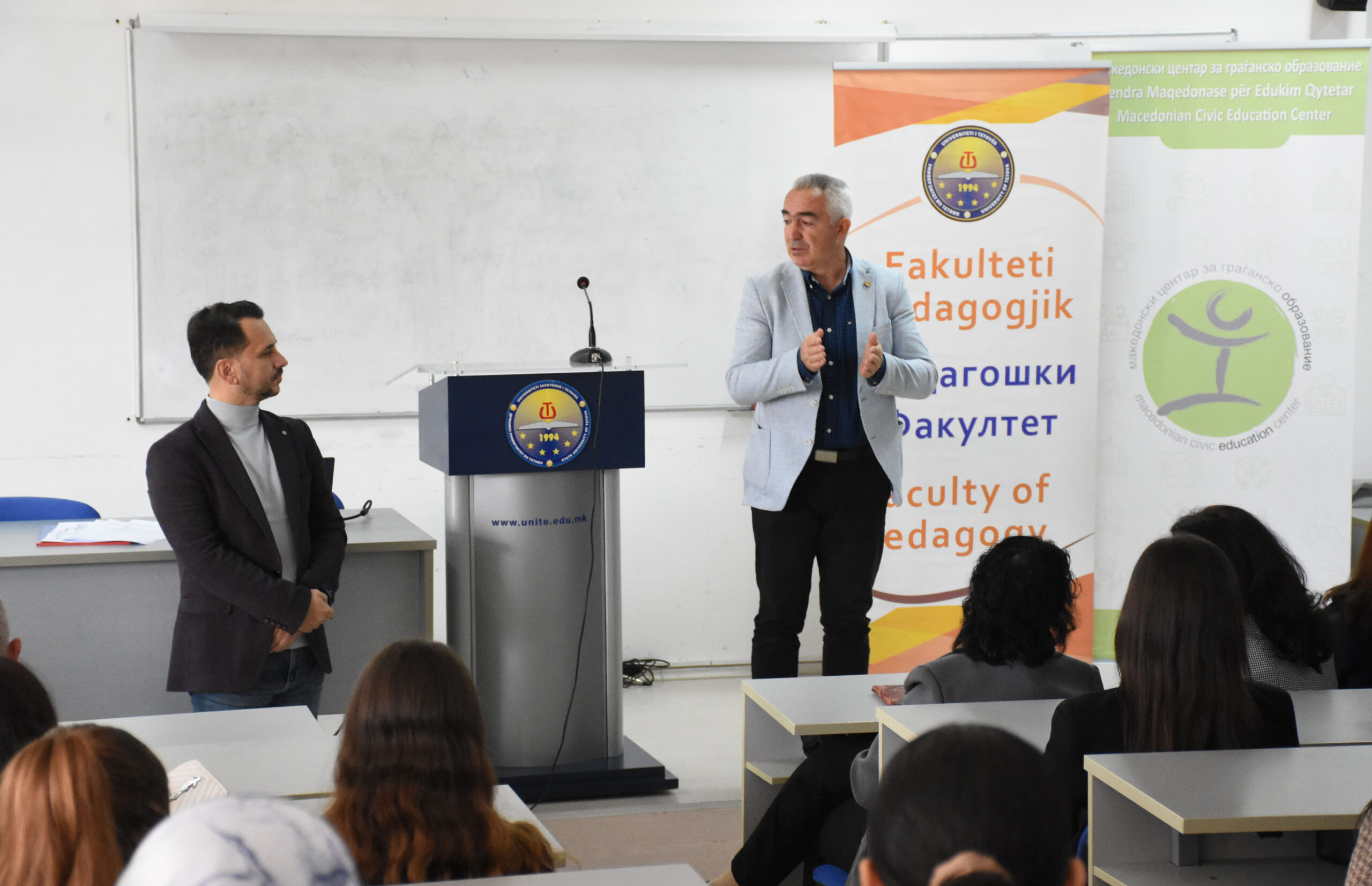 Drejtori i Qendrës Maqedonase për Edukim Qytetar, z. Besnik Ramadani u shpreh se ndihet i kënaqur që qendra e tyre këtë vit është partner i Javës së Veçantë Studimore dhe uroi që studentët ta shfrytëzojnë këtë mundësi që të punojnë në mënyrë praktike, të dinë se si një projekt vjen nga ideja, te planifikimi, implementimi, buxhetimi dhe në fund evaluimi i rezultateve. Ai tha se për këtë arsye i pranishëm është edhe z.Metin Muaremi, trajnues i cili ka përvojë më shumë se 20 vjet në menaxhimin e projekteve dhe u sugjeroi studentëve që ta shfrytëzojnë në maksimum me pyetje sepse kanë se çfarë të mësojnë prej tij.