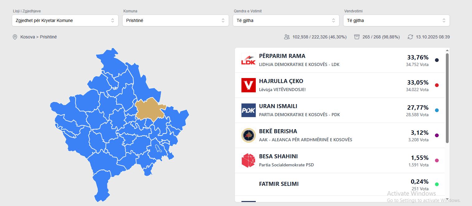 Aktualisht janë të numëruara 98.88 përqind e votave, apo kanë mbetur veç edhe tri kuti pa u numëruar./ Klankosova.tv