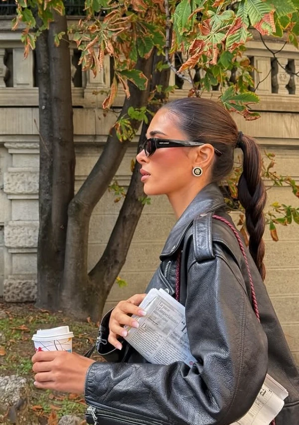 Si aksesorë përfshiu syzet dhe çantën e kuqe, që i dhanë një prekje sofistikuese pamjes së saj, ndërsa flokët e kapura në një gërshetë të gjatë dhe të rregullt përfunduan dukjen me delikatesë dhe stil.