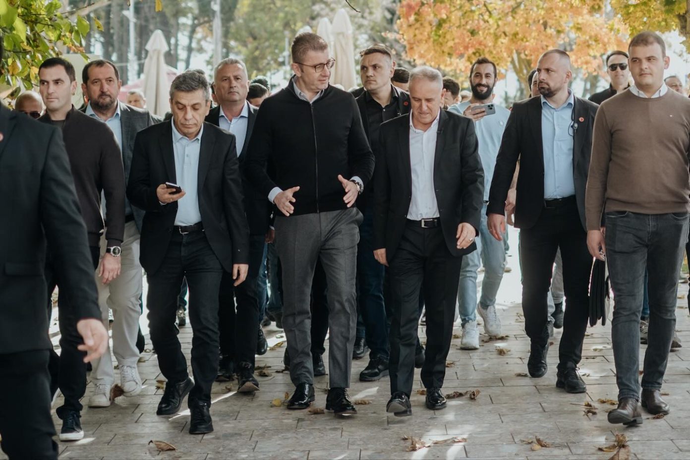 Kandidati i pavarur për kryetar të Strugës, Mendi Qira, u vizitua nga kryeministri Hristijan Mickoski dhe zëvendëskryeministrit, Izet Mexhiti me të cilët shëtiti së bashku nëpër pazarin e Strugës dhe piu kafe pranë Drinit të Zi.