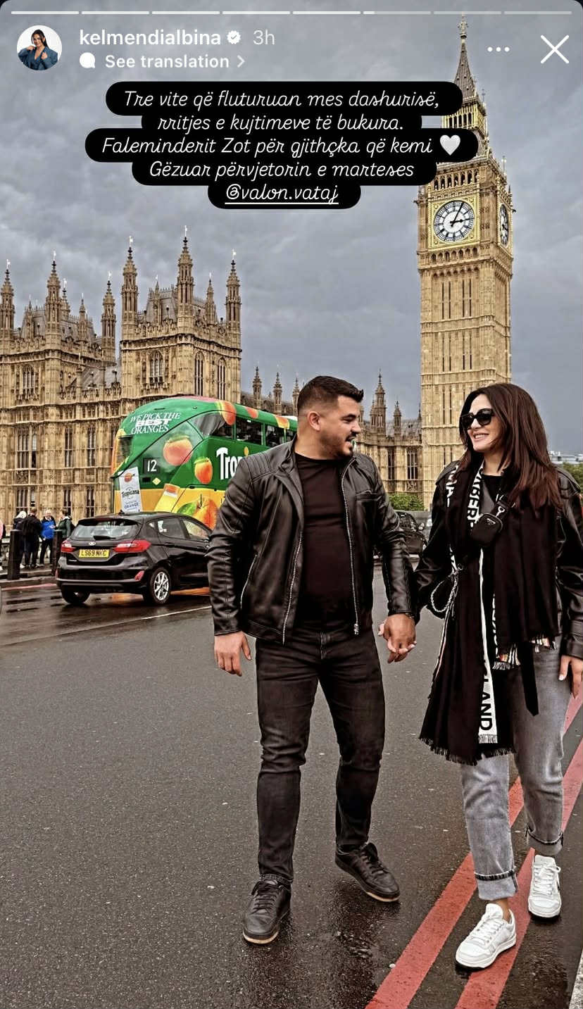 Albina dhe Valoni po festojnë tre vite së bashku, dhe për këtë moment të veçantë, ajo ka shprehur ndjenjat e saj me disa fjalë të ndjera.