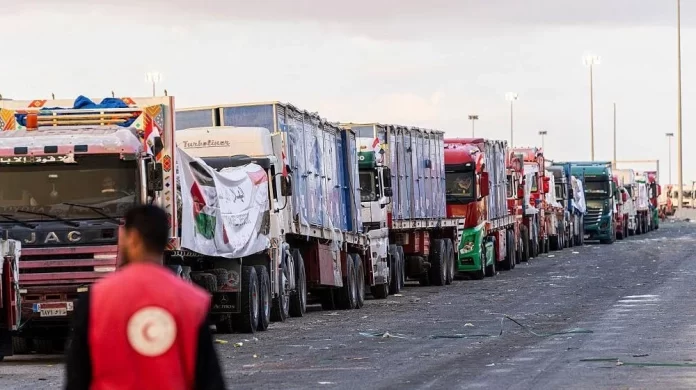 Gjysmëhëna e Kuqe Egjiptiane ka bërë të ditur se kamionët përmbajnë ndihma mjekësore, çadra, batanije, ushqim dhe karburant.