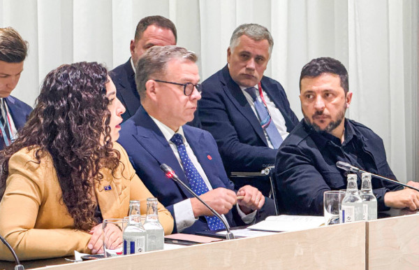 Përmes një postimi në Facebook, Osmani ulur afër presidentit ukrainas, Zelensky thotë se ka theksuar rëndësinë e sigurisë së Ballkanit Perëndimor për Evropën.