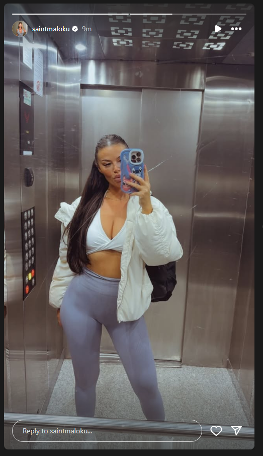Minuta më parë, Santiana ndau një foto nga ashensori, ku shihet e veshur me rroba sportive.