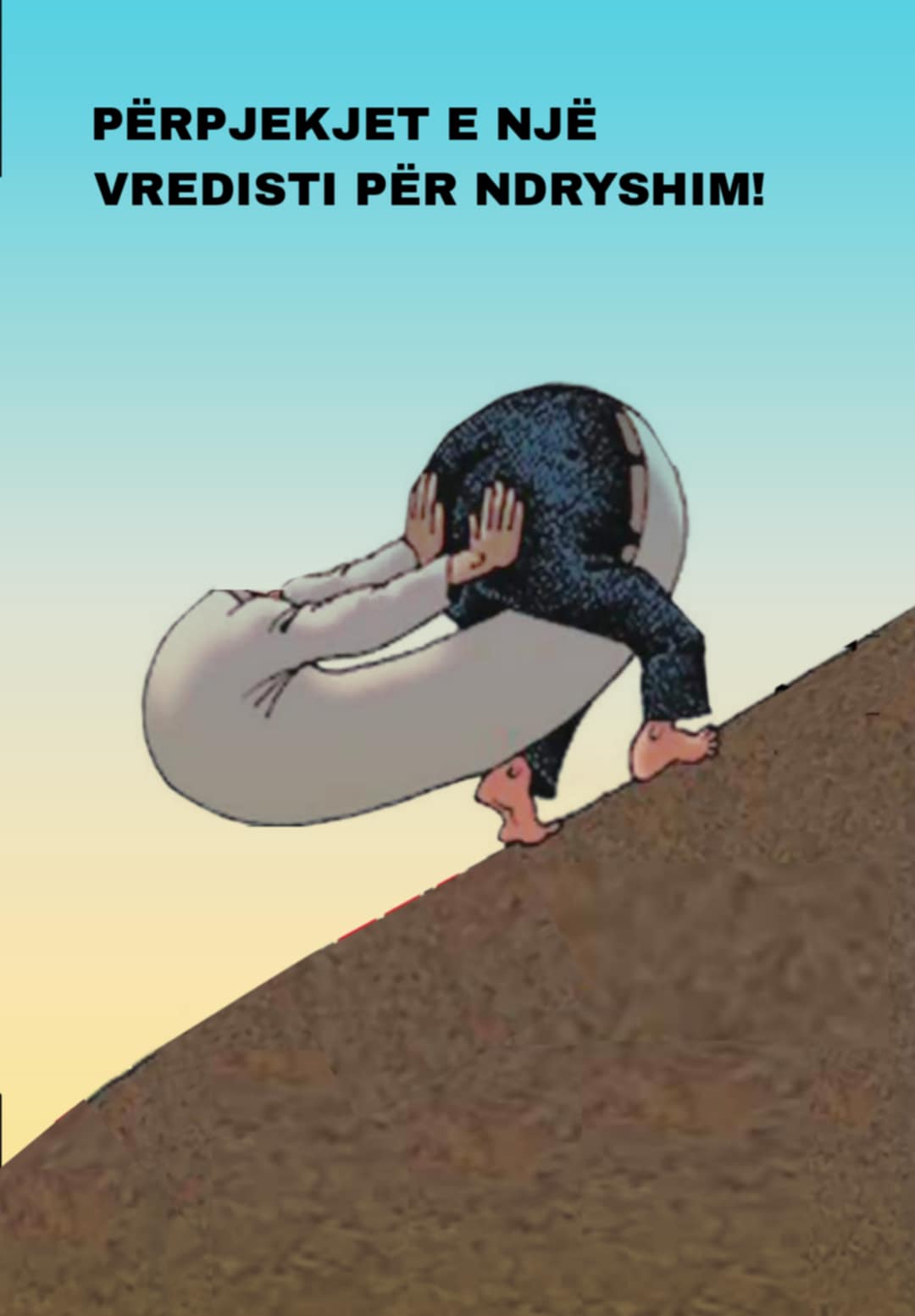 Në karikaturën e poshtme është paraqitur një nga liderët vredist që po përpiqet të ngjitet përpjetzës për ta sjell ndryshimin në “državën Severnistan”.