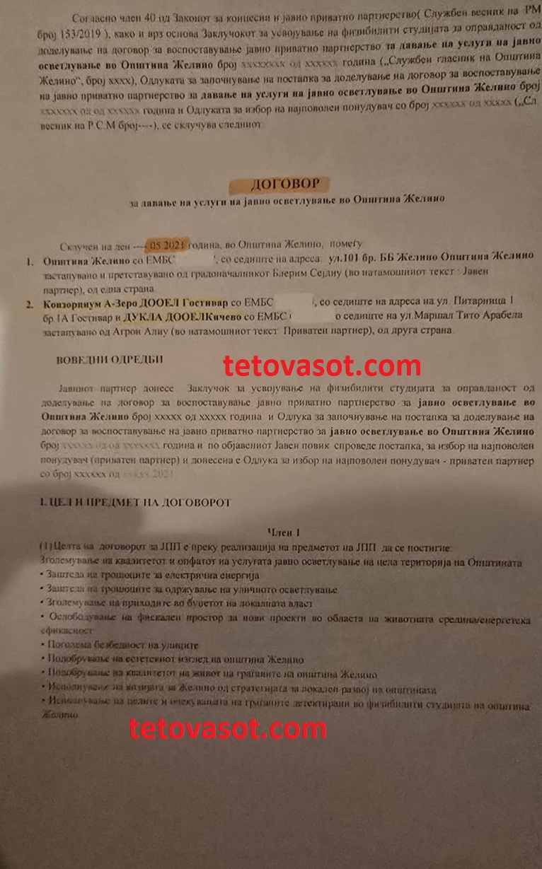 Portali TetovaSot ka zbuluar një skandal të madh, ku Blerim Sejdiu ka nënshkruar kontratë me kompaninë nga Gostivari A-Zero Gostivar dhe DUKLA Kërçovë për dhënien me koncesion të ndriçimit publik të komunës së Zhelinës për 10 vite, duke dëmtuar komunën e Zhelinës me mbi 1 milionë euro.