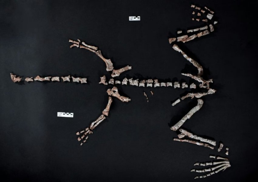 Skeleti i zbuluar përfshin një kafkë të pjesshme, një shtyllë kurrizore të plotë që shtrihet deri në bisht dhe gjymtyrë pothuajse të plota të përparme e të pasme – një gjendje jashtëzakonisht e rrallë për fosile kaq të lashta.