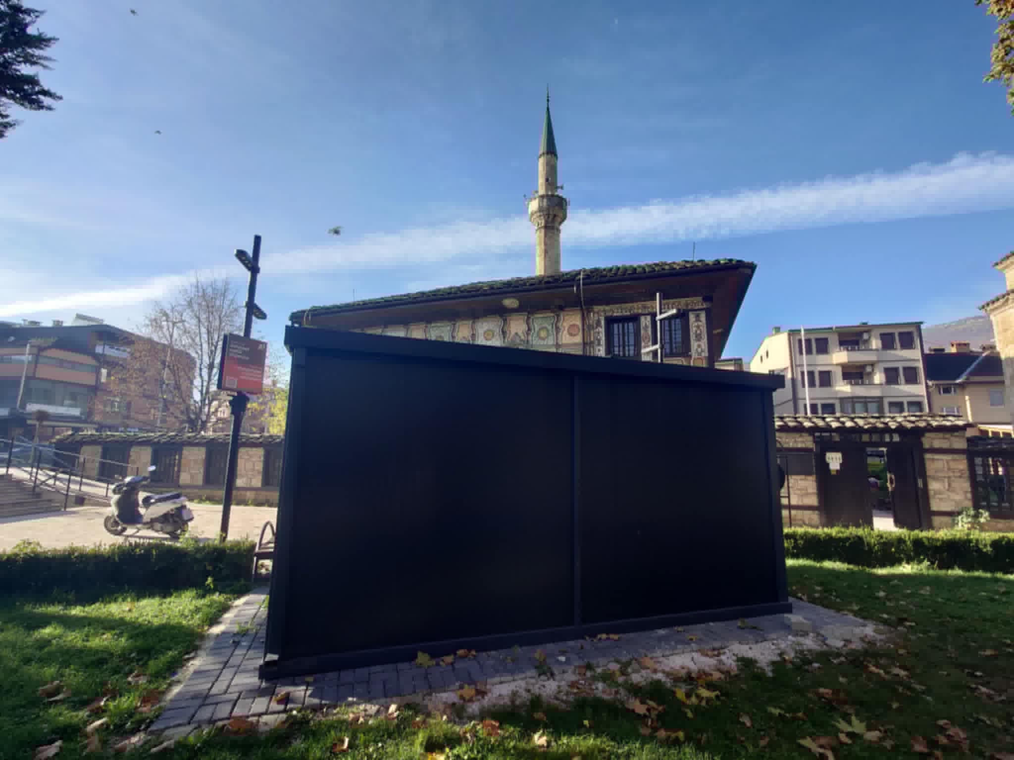 Megjithatë, dje, në mes të ditës, pikërisht në atë hapësirë ku ishin të vendosura ato tre ulëse, u vendos një objekt/kiosk në formë kontejneri, i cili në masë të madhe e devalvon dhe e shëmton hapësirën ku është vendosur, veçanërisht duke bllokuar pamjen dhe degraduar vlerat e Xhamisë së Pashës.