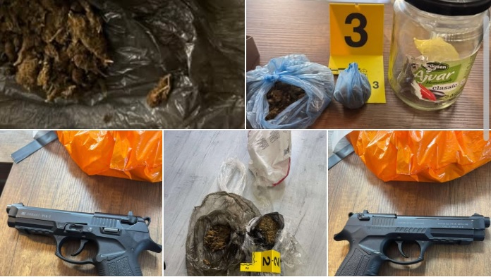 “Më 01.11.2025 rreth orës 13:10, në Tetovë, në rrugën “Prespa”, policia nga Stacioni i Policisë Tetovë, bazuar në urdhër gjyqësor, ka kryer bastisje tek berberhane, që përdorej nga B.L. (21) nga Tetova, i cili nuk ishte prezent. Bastisja u krye në praninë e H.A. (23) nga Tetova, i biri i pronarit të shtëpisë, ku u gjetën dhe u sekuestruan: marihuanë e paketuar në disa doza, 2000 qese të zbrazëta, një peshore digjitale dhe një pistoletë “Zoraki” kalibër 9 mm me karikator të zbrazët. Pas dokumentimit dhe sqarimit të rastit, kundër B.L. do të parashtrohet kallëzim penal”, thonë nga MPB.