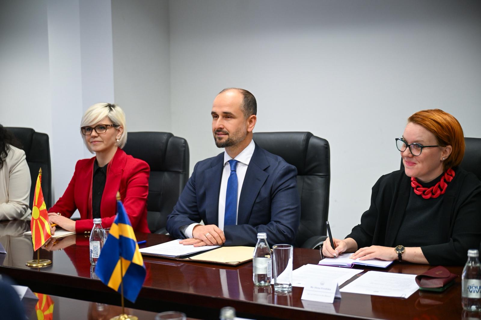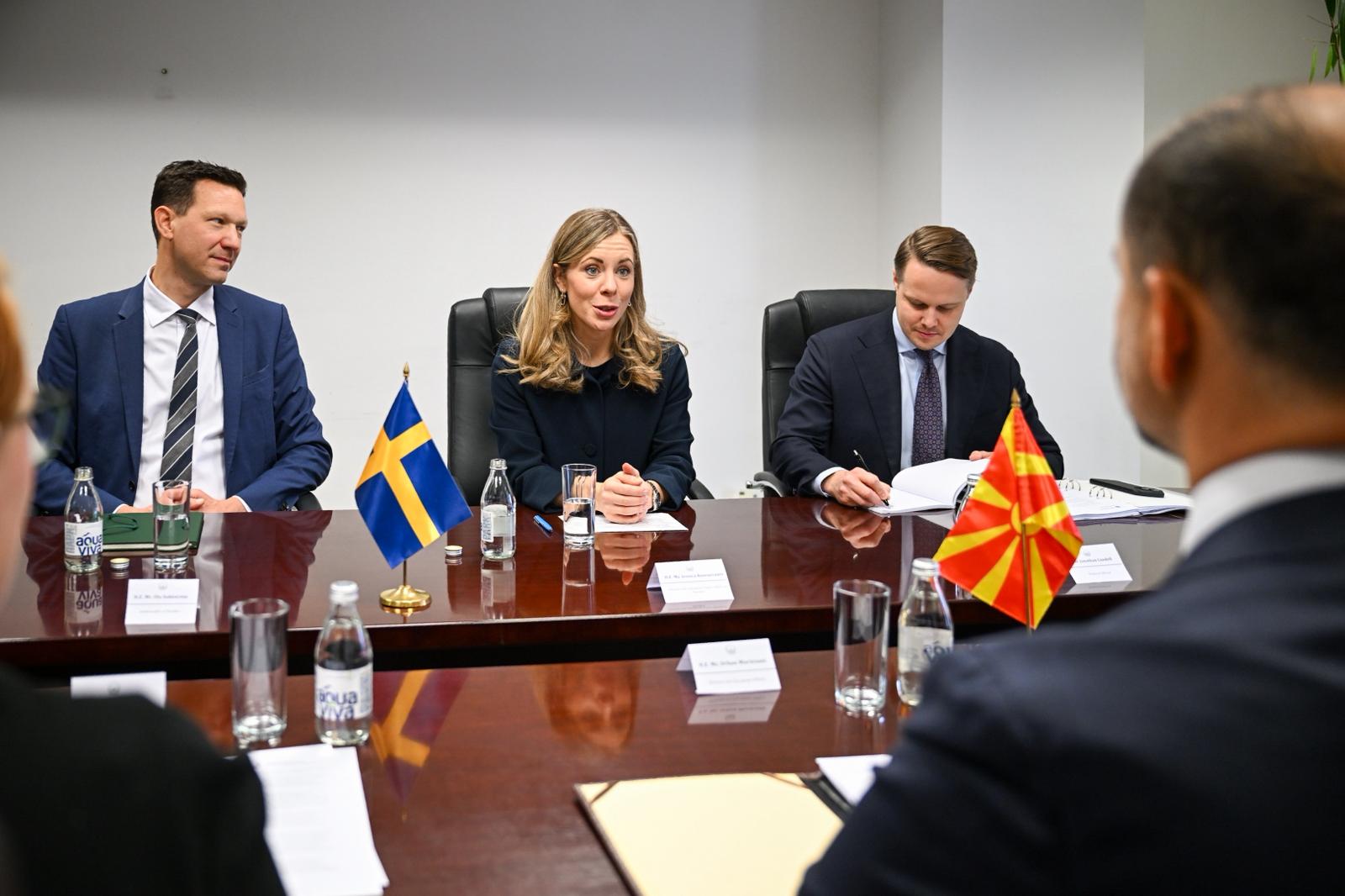 Në kuadër të diskutimeve u potenuca veçanërisht rëndësia e bashkëpunimit dypalësh në mes Maqedonisë së Veriut dhe Suedisë, e cila po zhvillohet në mënyrë të vazhdueshme përmes projekteve të Agjencisë Suedeze për ndihmë ndërkombëtare për zhvillim (ASNNZH-së), në pajtim me Strategjinë për bashkëpunim reformues me Ballkanin Perëndimor dhe Turqinë për periudhën 2021–2027. Përmes kësaj programi, Suedia mbështet projekte në fushat e të drejtave të njeriut, demokracisë, barazisë gjinore, mbrojtjes së mjedisit jetësorë dhe zhvillimit ekonomik gjithëpërfshirës. Ndër iniciativat më të rëndësishme janë bashkëpunimi në mes shërbimeve statistike shtetërore, përforcimi i kapaciteteve të administratës publike, mbështetja e grave në mjediset rurale, projektet për ajër të pastër dhe energji të qëndrueshme, si dhe asistenca për avancimin e transparencës dhe llogaridhënies në institucionet publike.