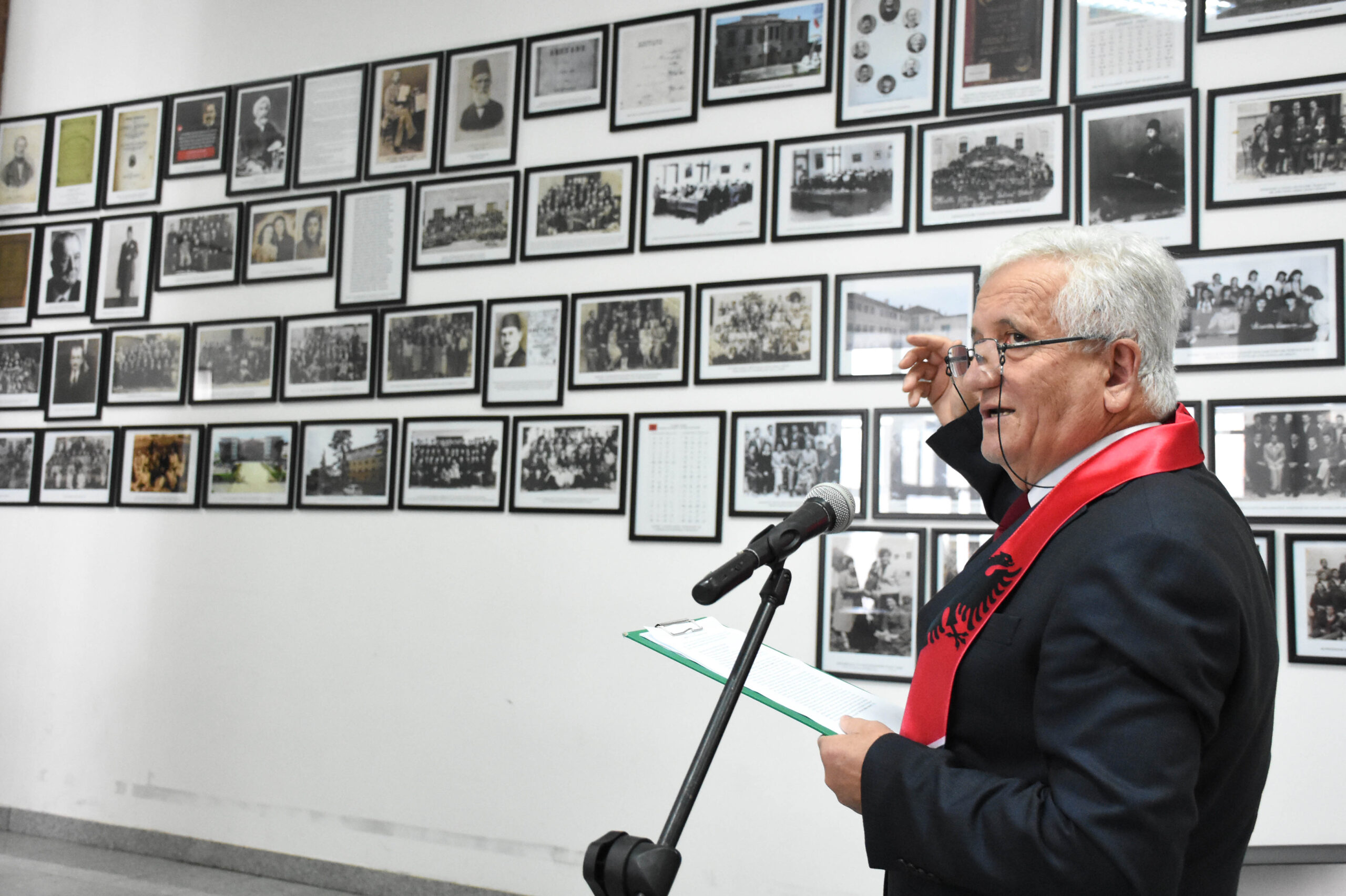 Rektori i Universitetit të Tetovës, Prof. Dr. Jusuf Zejneli në fjalën e tij tha se Universiteti i Tetovës në kuadër të veprimtarisë së tij, çmon dhe respekton, në veçanti ato personalitete të cilat me dekada, në kohëra më të vështira, dhanë kontributin e tyre më të çmuar në edukimin e brezave, përkatësisht në të mirën e përgjithshme. “Përderisa jemi në festat e nëntorit, me këtë rast, sot, hapim, proklamojmë, prezantojmë para qytetarëve, studentëve dhe stafit tonë, një ekspozitë të veçantë kushtuar atyre të cilët më së shumti sakrifkuan për zhvillimin, për të mirën e përgjithshme, përkatësisht të arsimtarëve, të mësuesëve tanë, të cilët në kushtë të rënda dhe të vështira, kultivuan dhe ruajtën identitetin, alfabetin dhe gjuhën shqipe, andaj falë përkushtimit, edukimit dhe punës së tyre, ne sot e zhvillojmë edhe arsimin e lartë në gjuhën shqipe, në një institucion i cili korr suksese dhe përgatit kuadro që ushtrojnë veprimtarinë e tyre në më shumë institucione. Njëkohësisht krahas asaj që prezantojmë në kuadër të misionit tonë, rolit të arsimtarit, mësuesit tonë edhe prezantohen objektet, shkollat, të cilat ndonëse kanë qenë të vjetra për nga forma, por me një zemër të madhe për nga vizioni dhe misioni dhe falë tyre ne sot ushtrojmë veprimtarinë tonë në këtë tempull të shenjtë siç është Universiteti i Tetovës.” – u shpreh Rektori i Universitetit të Tetovës, Prof. Dr. Jusuf Zejneli.