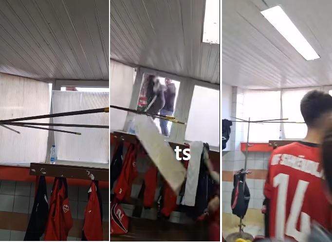 Në një tjetër video, shihet se si huliganë maqedonas sulmojnë lojtarët shqiptarë pas përfundimit të ndeshjes, duke gjuajtur me sende të forta dhe thyer dritaret e zhveshtores, ku ndodheshin futbollistët e Shkëndijës. Sulmi ka ndodhur në sy të forcave policore, të cilat, sipas dëshmitarëve, nuk kanë ndërhyrë menjëherë për të parandaluar dhunën.