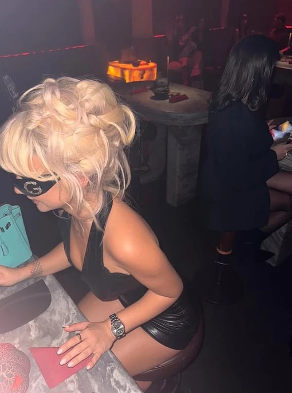 Këngëtarja ka ndarë disa fotografi nga një ambient nate, ku ka shkëlqyer me flokët e saj biondë dhe me një fustan të shkurtër lëkure, që i theksonte linjat perfekte.