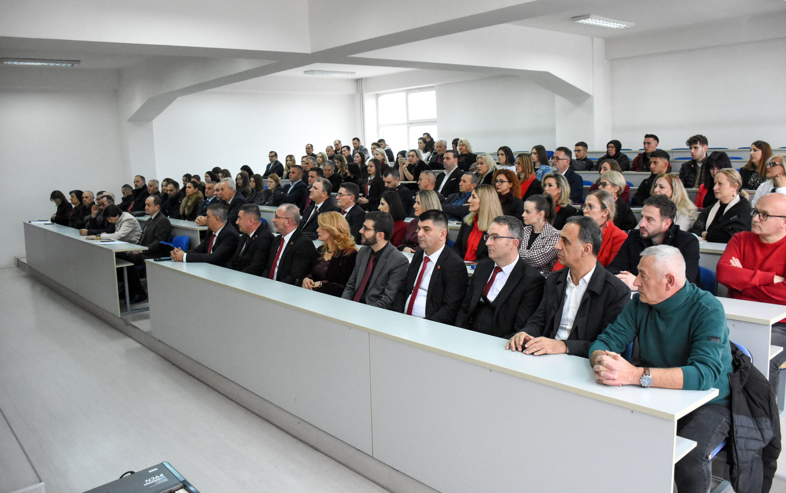 Dekani i Fakultetit Filozofik, Prof. Dr. Kushtrim Ahmeti në fjalimin e tij tha se në kalendarin historik shqiptar, 28 Nëntori shënon pikënisjen e një rrugëtimi të gjatë dhe të vështirë drejt lirisë. Kjo ditë e shenjtë lidhet me dy momente madhore të historisë sonë: 28 Nëntorin e vitit 1443, kur në Krujë u ngrit flamuri i Kastriotit, dhe 28 Nëntorin e vitit 1912, kur në Vlorë Ismail Qemali shpalli Pavarësinë e Shqipërisë, duke i dhënë jetë shtetit modern shqiptar.