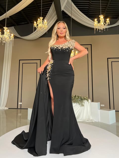 E veshur me një fustan të zi mahnitës, të zbukuruar me detaje të arta dhe me një prerje që i jep hijeshi figurës së saj, ajo ka shkëlqyer në çdo kuptim të fjalës.
