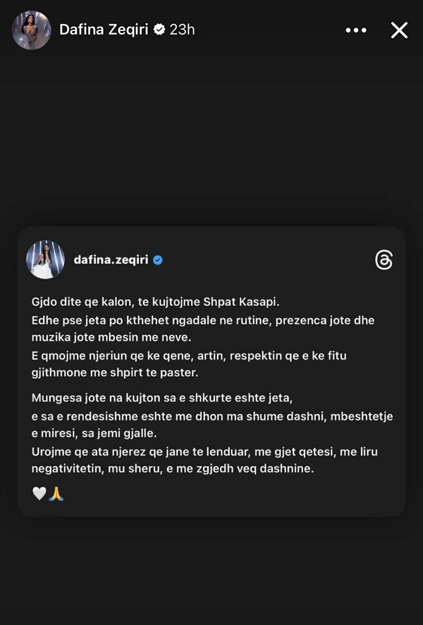 “Çdo ditë që kalon, të kujtojmë Shpat Kasapi.Edhe pse jeta po kthehet ngadalë në rutinë, prezenca jote dhe muzika jote mbesin me neve.