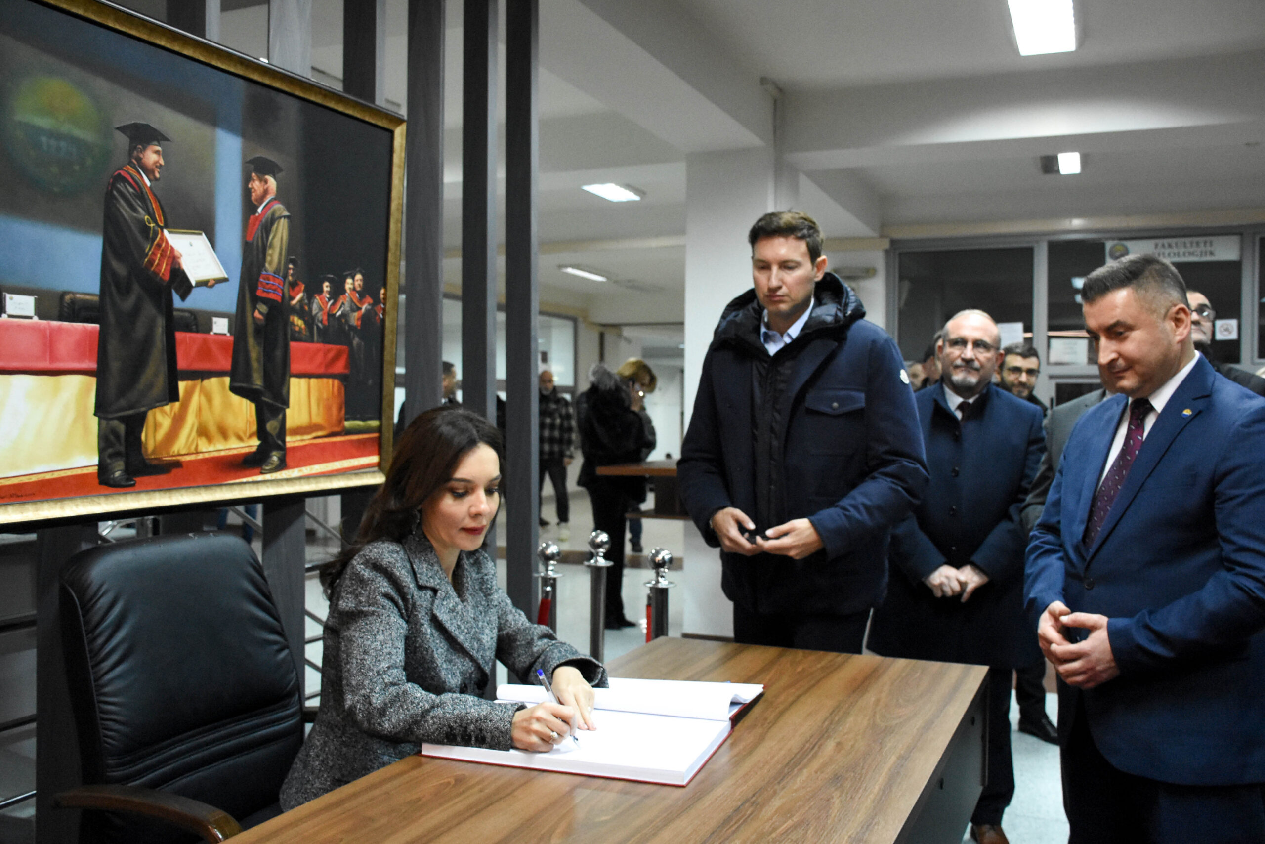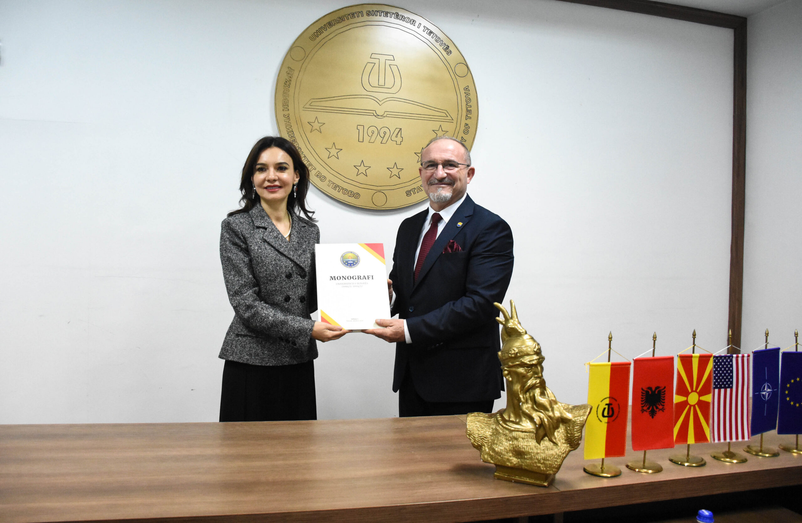 Universiteti i Tetovës, më 23 dhjetor 2025, pati kënaqësinë të mirëpresë në një vizitë zyrtare Ministren për Evropë dhe Punë të Jashtme të Republikës së Shqipërisë znj. Elisa Spiropali bashkë me ambasadorin z. Denion Meidani. Gjatë qëndrimit në Universitetin e Tetovës ajo u prit nga Rektori i Universitetit, Prof. Dr. Jusuf Zejneli dhe bashkëdrejtuesit e tjerë të universitetit. Gjatë takimit, Rektori Prof. Dr. Jusuf Zejneli e njoftoi Ministren për misionin, vizionin dhe zhvillimet aktuale të Universitetit të Tetovës, duke theksuar rolin e tij si institucion publik i arsimit të lartë që kontribuon në avancimin e dijes, shkencës dhe zhvillimit shoqëror. Ai vuri në pah përkushtimin e universitetit ndaj cilësisë akademike, kërkimit shkencor dhe ndërkombëtarizimit, si dhe rëndësinë e bashkëpunimit me institucionet arsimore dhe shtetërore të Republikës së Shqipërisë. Ndër të tjera u theksua rëndësia e krijimit të një qendre të përbashkët akademike ku ekspertë të fushave të ndryshme mund të bashkëhartojnë projekte arsimore, shkencore, kulturore, sociale e të tjera.