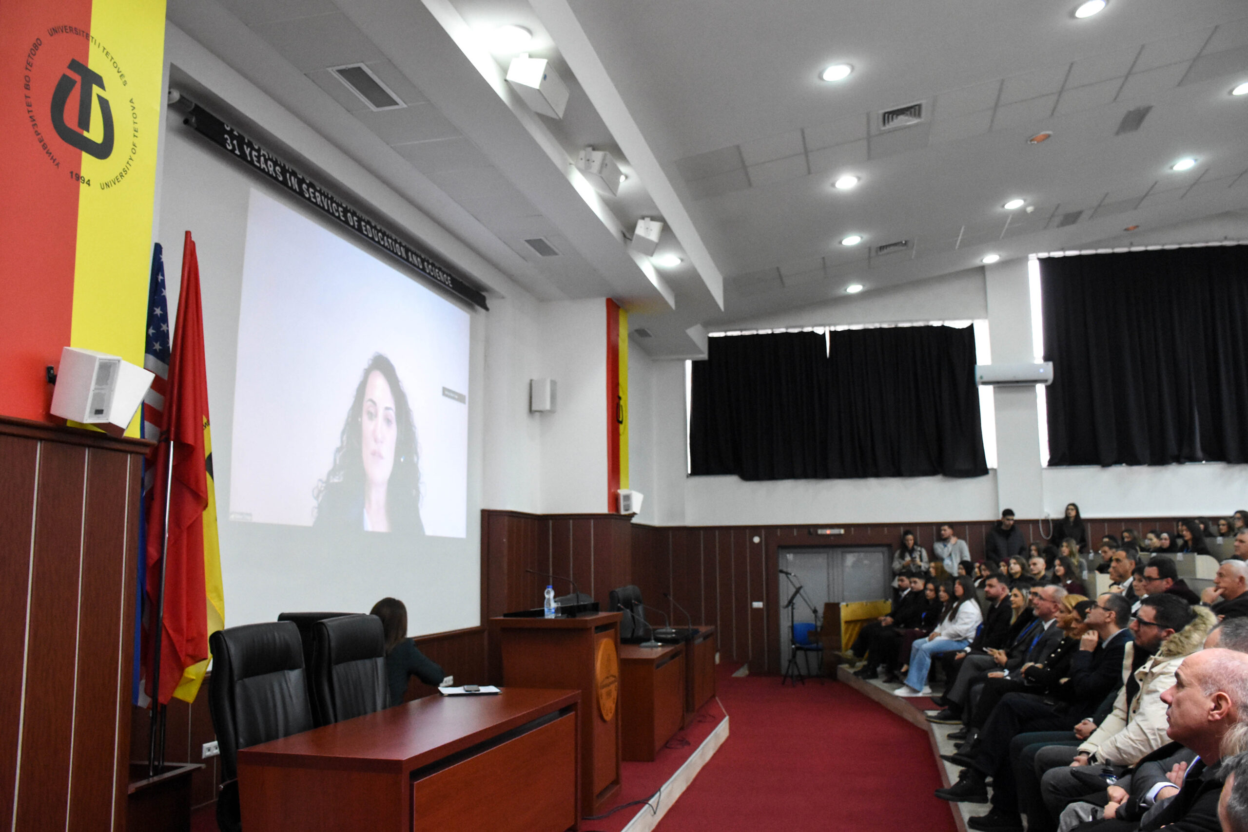 Në vijim të fjalimit të tij, ai tha se Universiteti i Tetovës nuk është thjesht vatër dijeje. Universiteti i Tetovës ka ADN-në e tij dhe gjithkush që përpiqet ta sabotojë këtë ADN dhe që mundohet ta devijojë frymën e UT-së…si për ironi të fatit vetëpërjashtohet. Jo nga universiteti – por nga historia e tij, nga rrjedha natyrore e zhvillimit. Ata të gjithë, secili në kohën e vet, kanë qenë digë e fortë ndaj çdo sfide. “Sot, dua t’ju uroj me zemër suksese në të gjitha punimet tuaja. Jeni ju ata që e mbani gjallë frymën e Universitetit dhe jeni ju ata që nesër do ta çoni më larg se çdo brez para jush. Sytë tanë janë kah ju. Dua ta dini se në çdo hap që do të bëni ne do t’ju qëndrojmë pas me gjithë potencialin dhe mbështetjen që meritoni. Mos e harroni historinë as kur pas disa dekadash rrëfimi për Universitetin e Tetovës ndoshta do të ndahet vetëm nga një vijë e hollë demarkacioni mes legjendës dhe një realiteti të dikurshëm. Mos lejoni që sakrifica e atyre që ndërtuan themelet e këtij institucioni të shndërrohet vetëm në tregim. Mbajeni gjallë, ruajeni, barteni me vete, sepse historia e këtij universiteti nuk është vetëm kujtesë — është identitet dhe obligim moral për çdo brez që vjen pas” – u shpreh në përfundim të fjalës së tij, Prorektori për Shkencë, Prof. Dr. Vullnet Ameti.