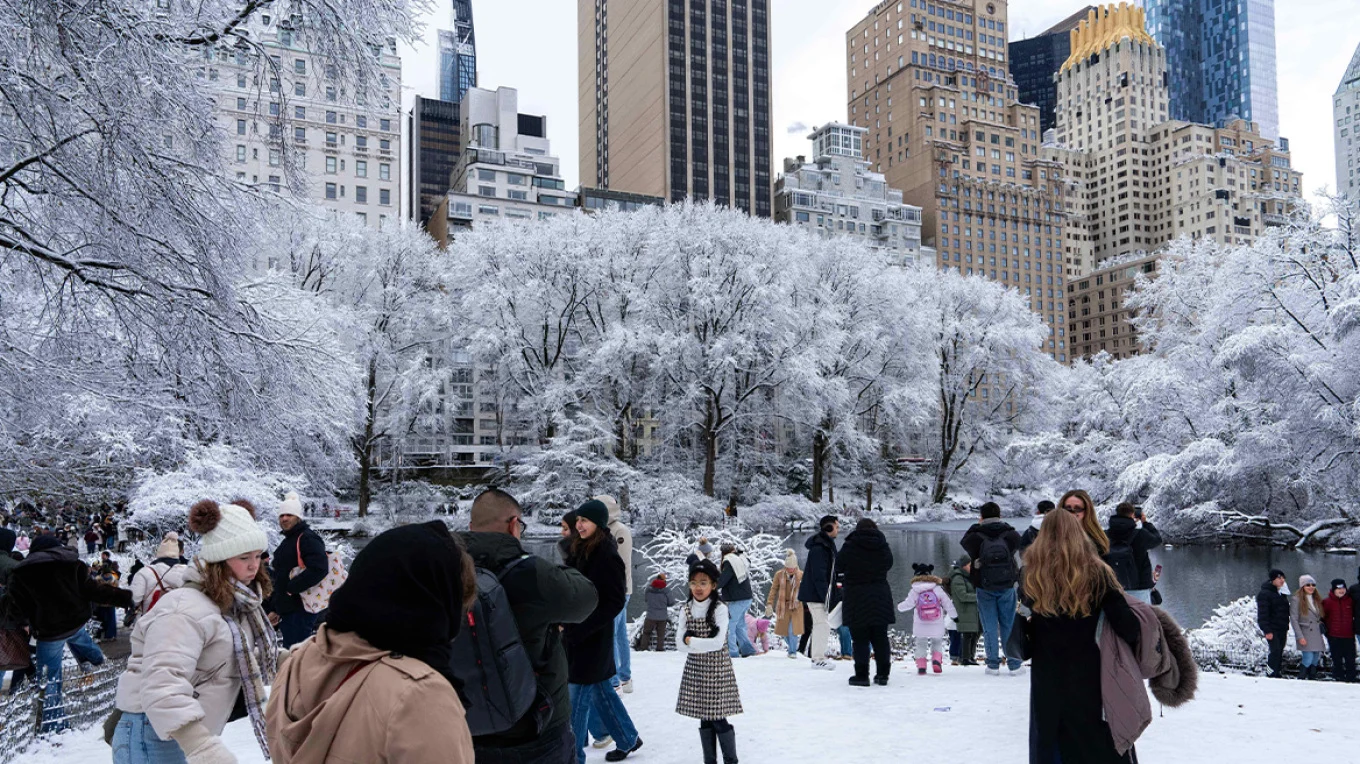 VIDEO: 🇺🇸 New York City blanketed in its first snow of winter