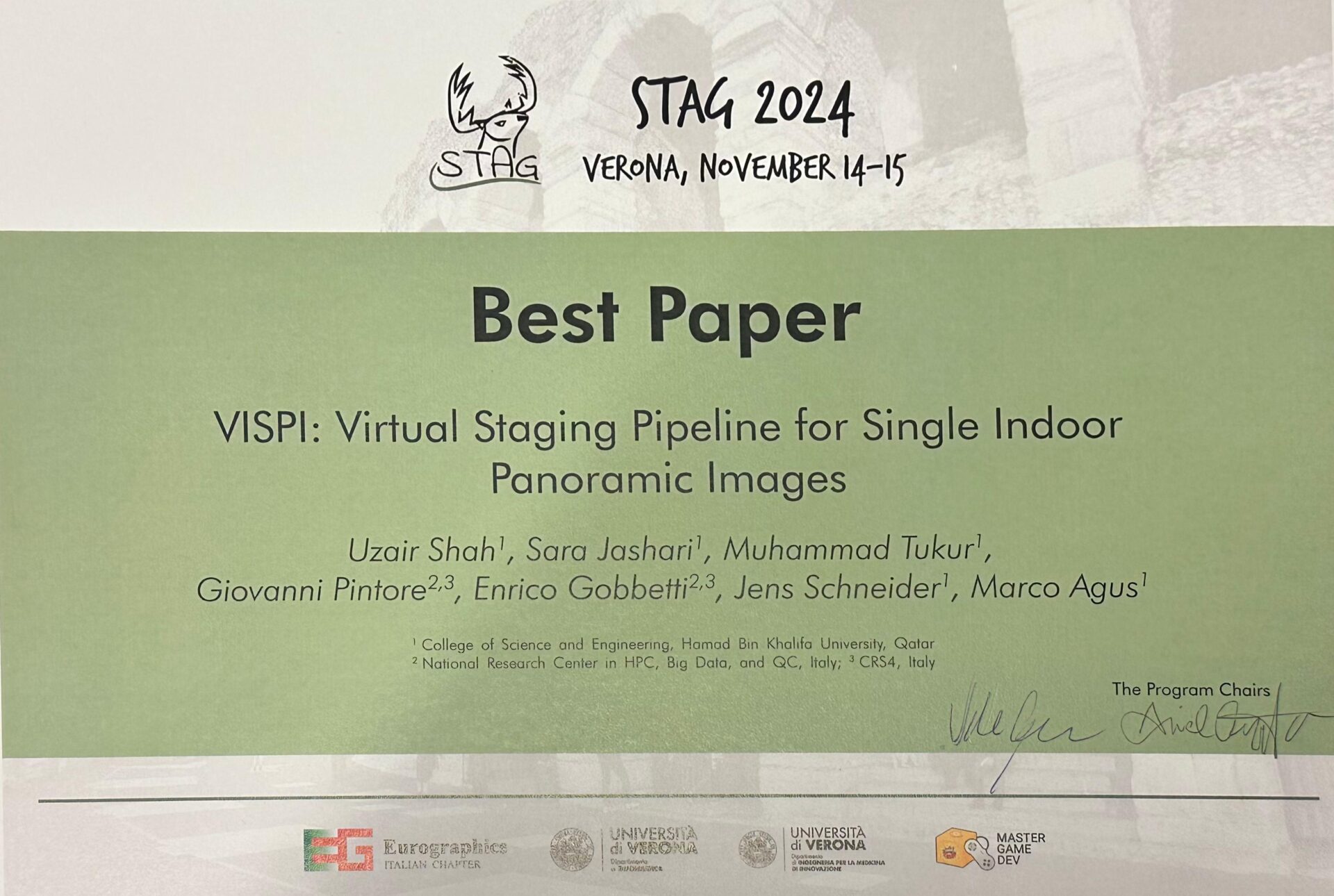 Në STAG – Smart Tools and Applications in Graphics, një konferencë nën patronazhin e Eurographics Italian Chapter, Sara ka prezantuar dy punime shkencore. Njëri prej tyre, VISPI – Virtual Staging Pipeline for Single Indoor Panoramic Images, u nderua me çmimin: “Best Paper Award”.