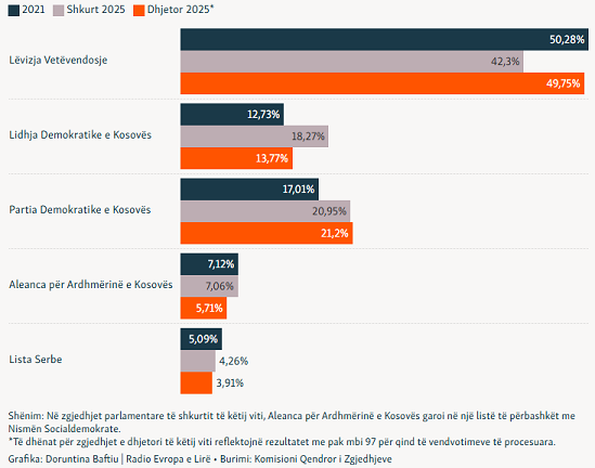 Në një grafikë të Radios Evropa e Lirë janë pasqyruar këto rezultate: