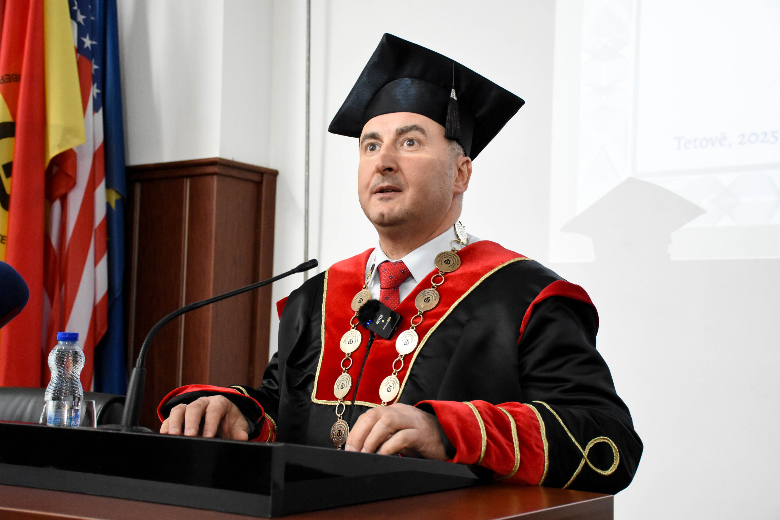 Rektori i Universitetit të Tetovës, Prof. Dr. Jusuf Zejneli i përgëzoi ekselentët për suksesin e tyre dhe theksoi se kjo rrugë e triumfit të tyre, nuk është e lehtë, është e shoqëruar me vështirësi, përkushtim, sakrificë dhe dilema. “Jam i bindur se ata në çdo moment e kanë pasur dhe do ta kenë mbështetjen e stafit mësimdhënës, administratës, stafit menaxhues, që bashkërisht ëndrrat e tyre t’i realizojnë në mënyrë më të lehtë, më triumfuese dhe më të suksesshme, sepse mbi të gjitha kjo është edhe një nga vulat e suksesit të Universitetit të Tetovës, kushtuar 31-vjetorit të themelimit. Të nderuar prindër të studentëvë tanë, më lejoni të shfaq mirënjohjen për ju, për mbështetjen që ju u keni dhënë djemve dhe vajzave, të cilët njëkohësisht janë djemtë dhe vajzat e institucionit tonë që me përkushtim dhe punë afirmojnë në tërësi Universitetin e Tetovës. Duke i bashkuar forcat tona, prindër, studentë, staf menaxhues, administratë, profesorë dhe të gjithë bashkëpunëtorët e Universitetit të Tetovës ne arrijmë që të ngremë nivelin e cilësisë dhe përgatisim kuadro të cilët përkojnë me nevojat e ekonomisë së tregut, ushtrimit të profesionit të tyre, jemi të bindur se ata do të shkëlqejnë, ashtu si shkëlqejnë gati çdo ditë, çdo javë, çdo muaj me çmime të ndryshme.” – tha Rektori i Universitetit të Tetovës Prof. Dr. Jusuf Zejneli.