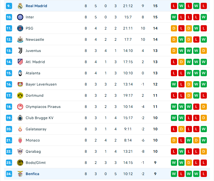Real Madridi, Interi, PSG, Newcastle, Juventus, Atletico Madrid, Atalanta, Bayer Leverkusen, Dortmund, Olympiacos, Club Brugge, Galatasaray, Monaco, Qarabag, Bodo/Glimb dhe Benfica kanë skuadrat që u kualifikuan në play-off.
