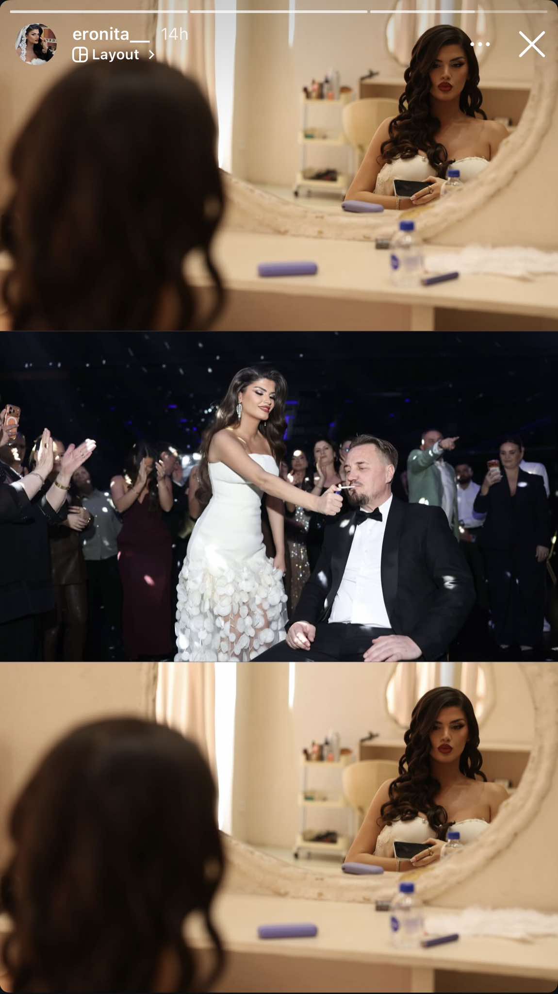 Gjatë vallëzimit, nusja shihet duke i ndezur një cigare Bleros, i cili në atë moment ishte i ulur në karrige.