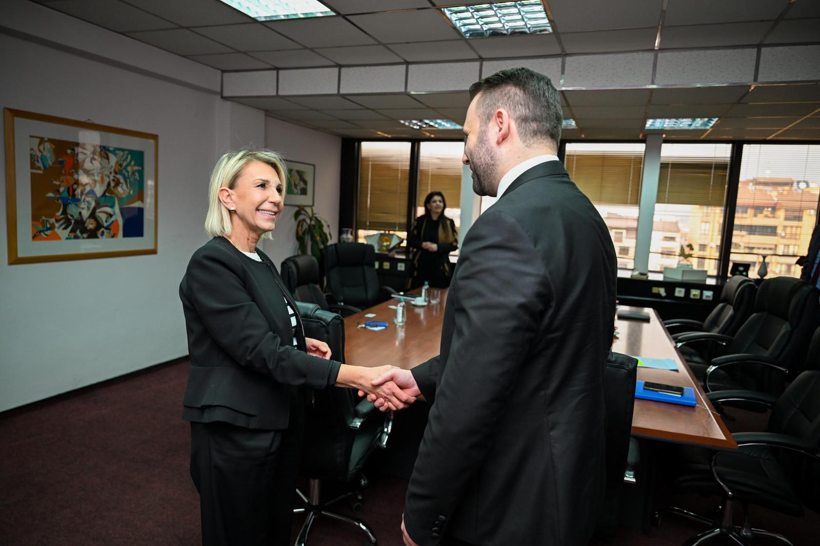Ministri i Ekonomisë dhe Punës, Besar Durmishi, realizoi takim pune me Ambasadoren e Republikës së Kroacisë në Republikën e Maqedonisë së Veriut, Sh.S. Nives Tiganj, në të cilin u diskutuan situatat dhe perspektivat për avancimin e bashkëpunimit ekonomik midis dy vendeve mike.