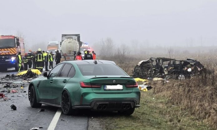 Pas përplasjes së fortë furgoni ‘fluturon’ në ajër dhe përfundon i shkatërruar në anën e rrugës, duke u marrë jetën 7 personave dhe duke lënë të plagosur rëndë 3 të tjerët.