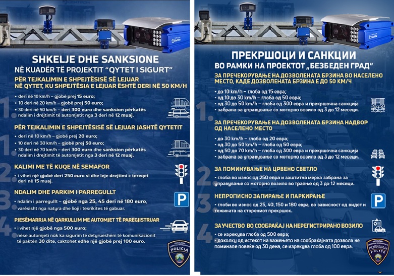 Me qëllim të rritjes së sigurisë në komunikacion dhe zbatimit të denjë të ligjeve, Ministria e Punëve të Brendshme i informon qytetarët për kundërvajtjet që sanksionohen përmes sistemit “Qyteti i Sigurt” dhe gjobat e parashikuara. ________________________________________