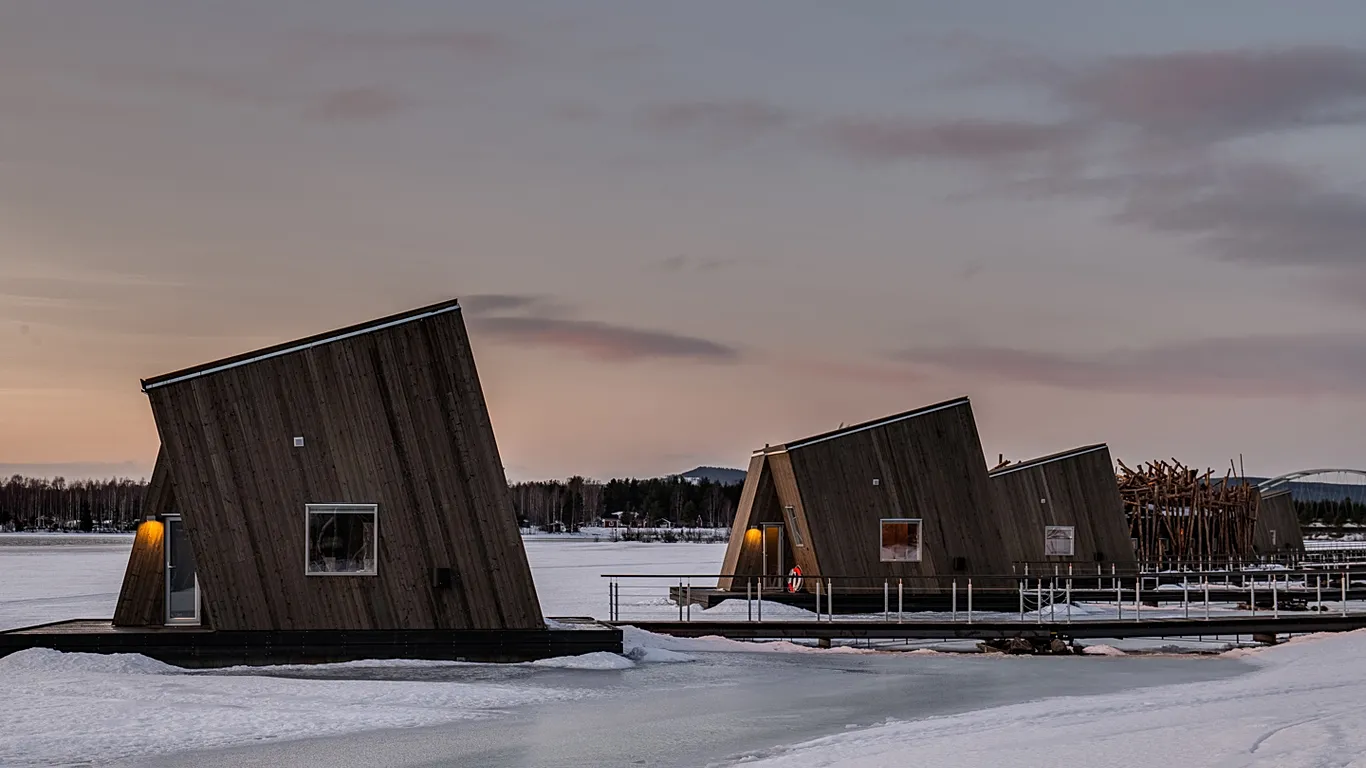 Hoteli Arctic Bath është një sauna dhe spa rrethore lundruese në lumin Lule. Struktura si fole ndjehet si një instalacion arti modern i zhytur në peizazhin arktik. Vizitorët lëvizin midis saunës, zhytjeve në lumë dhe dhomave të trajtimit, ndërsa bora bie qetësisht, duke përfshirë dhe darka me ushqime të sofistikuara dhe të qëndrueshme.