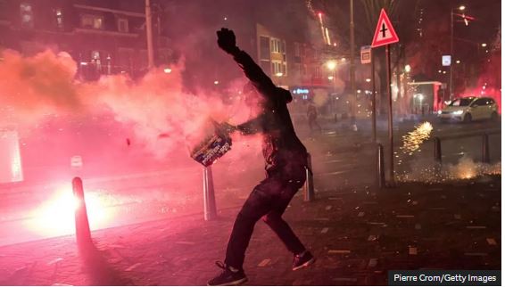 Bomba molotov u hodhën drejt policisë në qytetin jugor të Bredës. Në Roterdam, spitali i syve i qytetit tha se kishte trajtuar 14 pacientë, përfshirë 10 të mitur, për lëndime në sy. Dy prej tyre iu nënshtruan një ndërhyrjeje kirurgjikale.