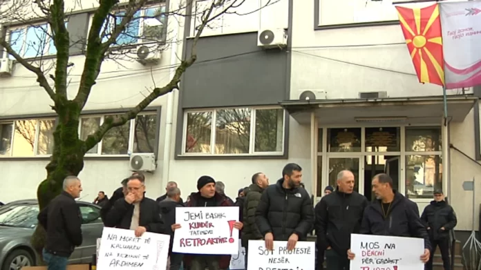 Të gjithë personat që kanë punuar në shtetet e lindjes, sot sërish protestuan para Drejtorisë së të Ardhurave Publike në Tetovë, kundër tatimeve të cilat u kërkohen të paguhen gjatë kohës të cilët ata kanë punuar jashtë vendit.