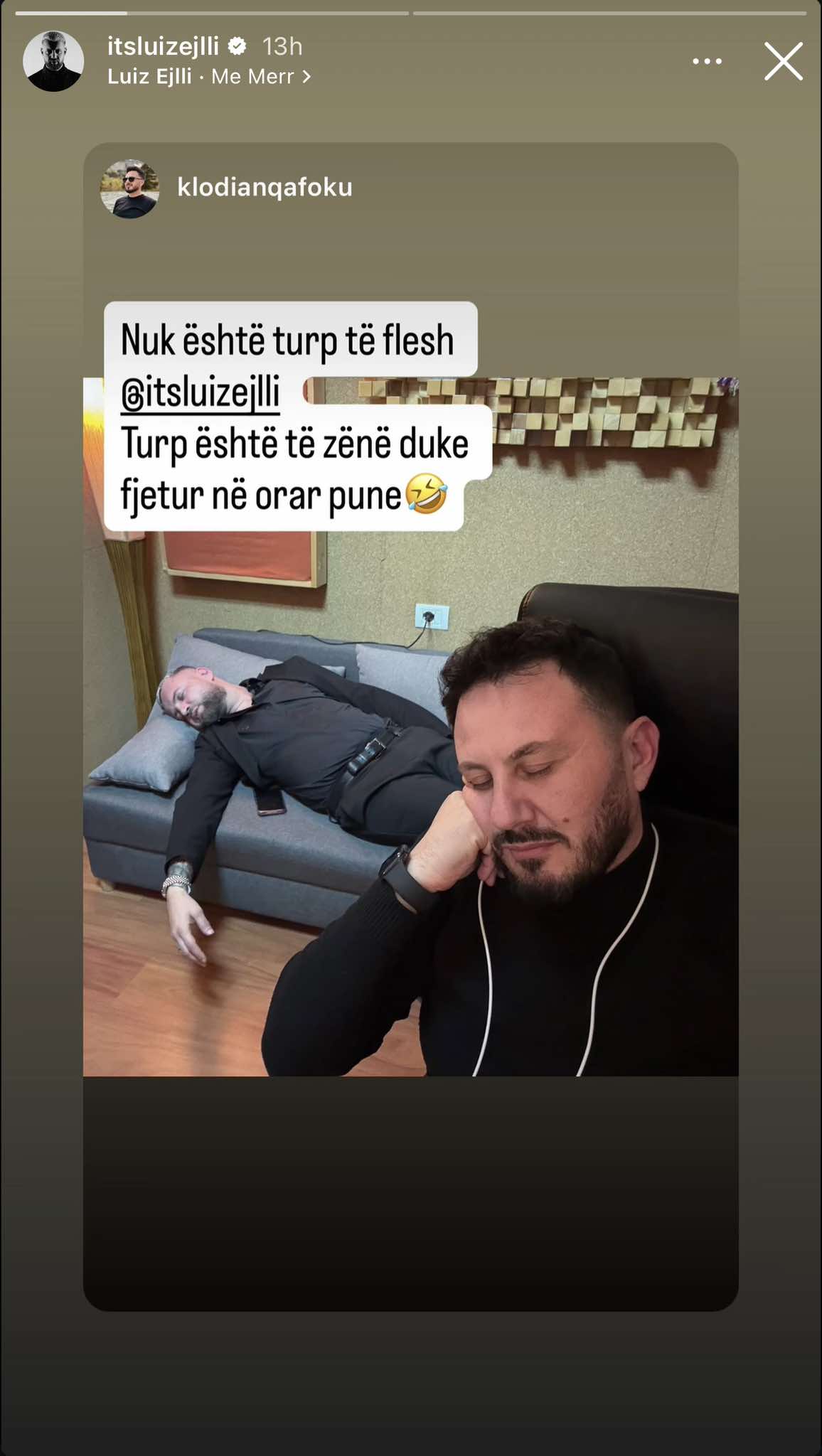 Luizi shihet duke fjetur në studion ku po realizohen këngët e tij të reja.