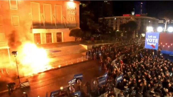 Pas fjalimit të Sali Berishës, protestuesit filluan të qëllonin me bomba molotovë dhe fishekzjarrë godinën e Kryeministrisë, ndërsa garda iu kundërpërgjigj me gaz lotsjellës.