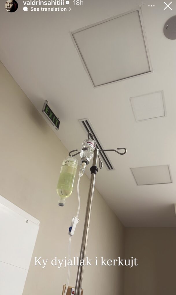 Përmes një postimi në rrjetet sociale, Sahiti ka ndarë me ndjekësit një fotografi ku shihet duke marrë infuzion.